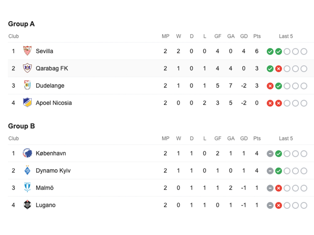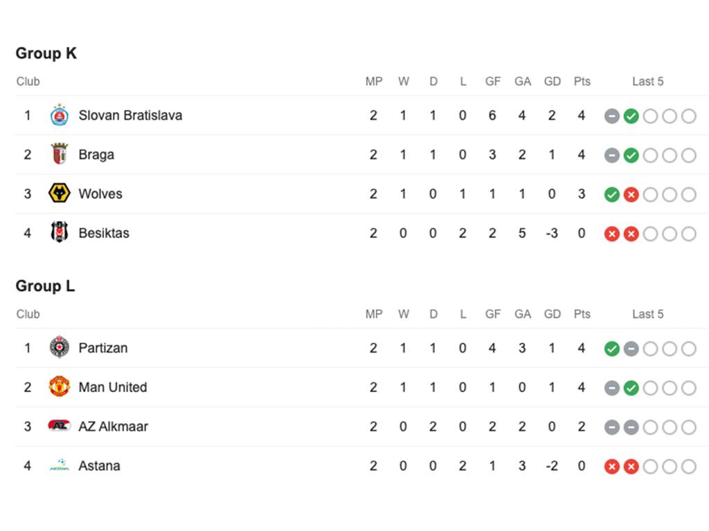 Foto Klasemen Sementara Putaran Ke 2 Liga Eropa