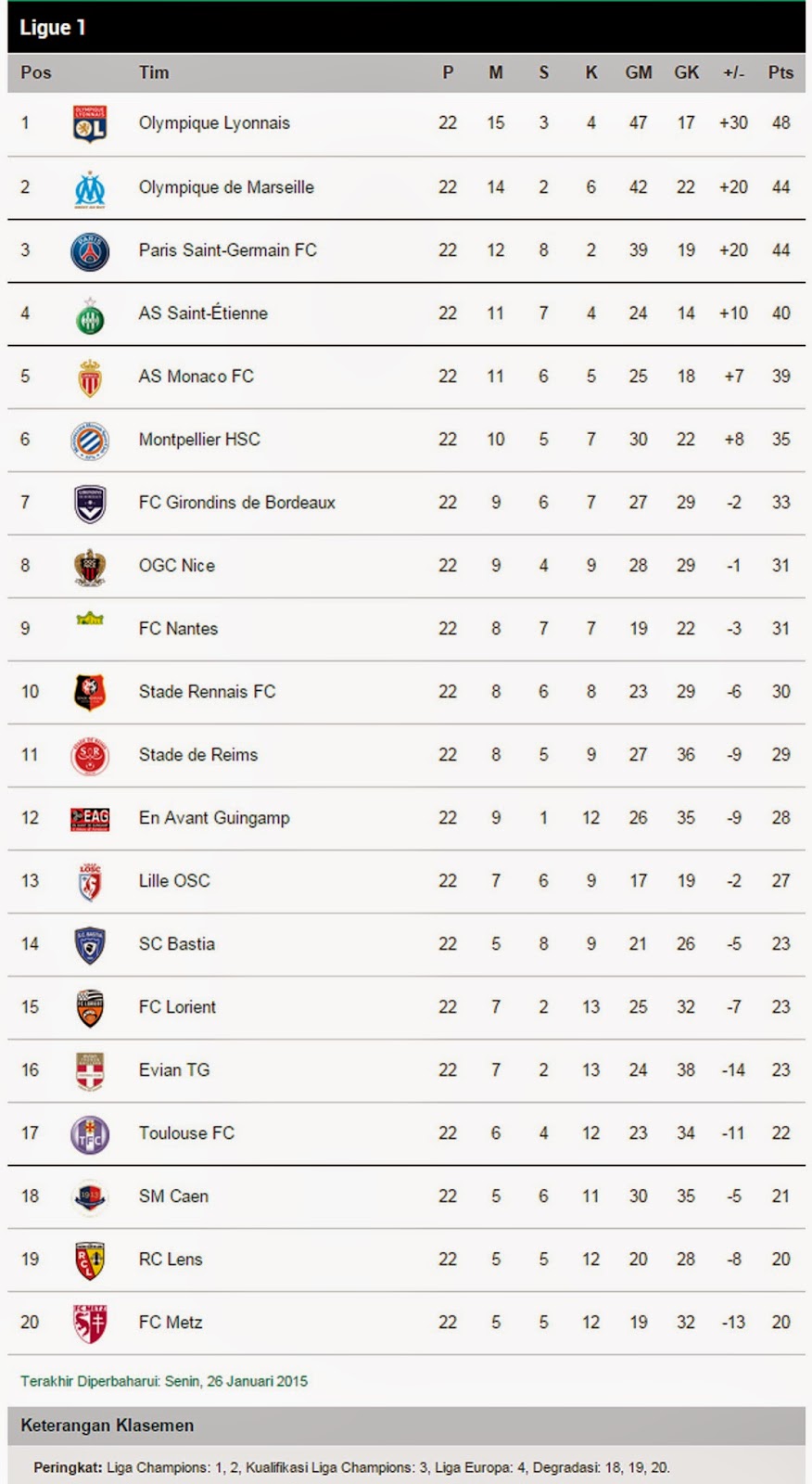Profil Dan Hasil Sepakbola Klasemen Liga Prancis Pekan 22