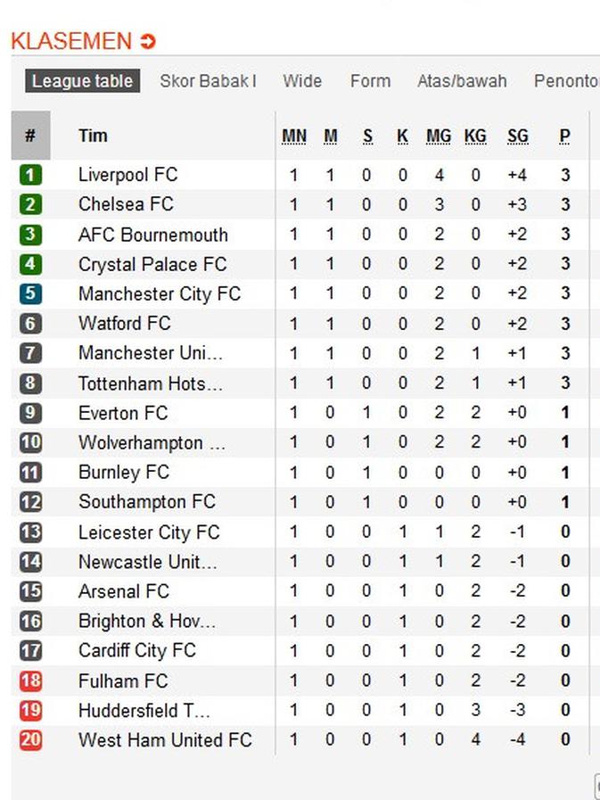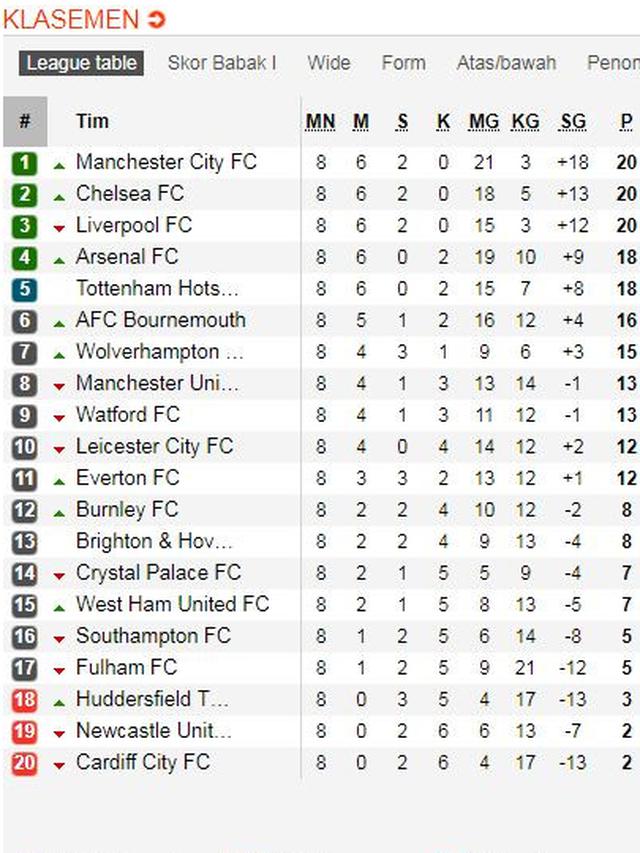 Klasemen Dan Top Skor Sementara Liga Inggris 2018 19 Indosport
