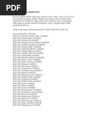 Daftar Kode Cabang Bank Bca Di Jakarta Kiatkita