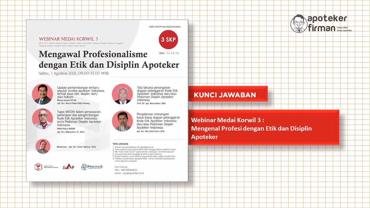 Kunci Jawaban Webinar Medai Korwil 3 Mengenal Profesi Dengan Etik Dan Disiplin Apoteker Apotekerfirman My Id