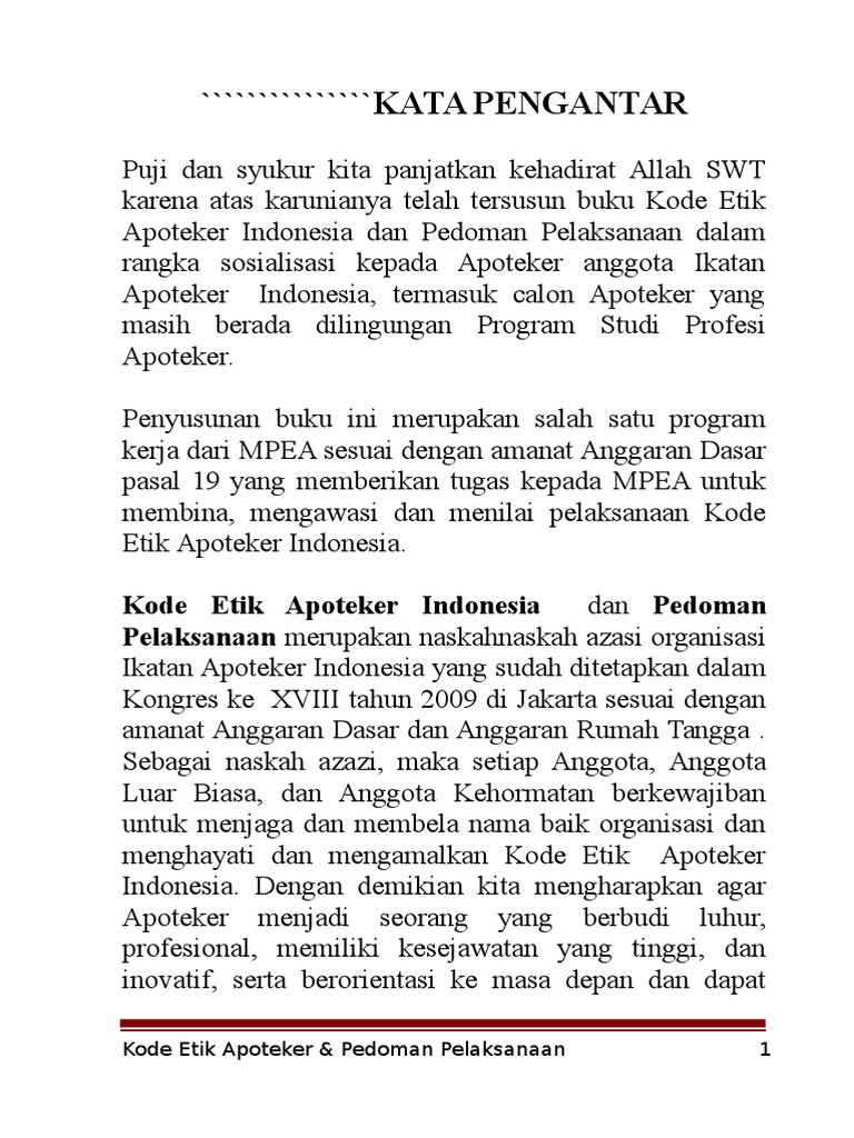 Kode Etik Apoteker Indonesia Dan Pedoman Pelaksanaan Doc Document