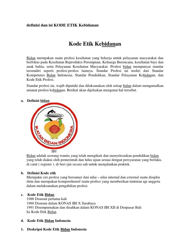 Resmi Kode Etik Bidan Indonesia Ibi Terbaru