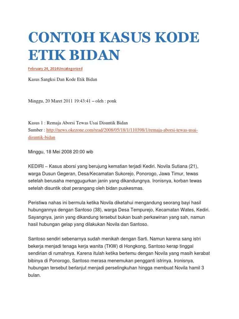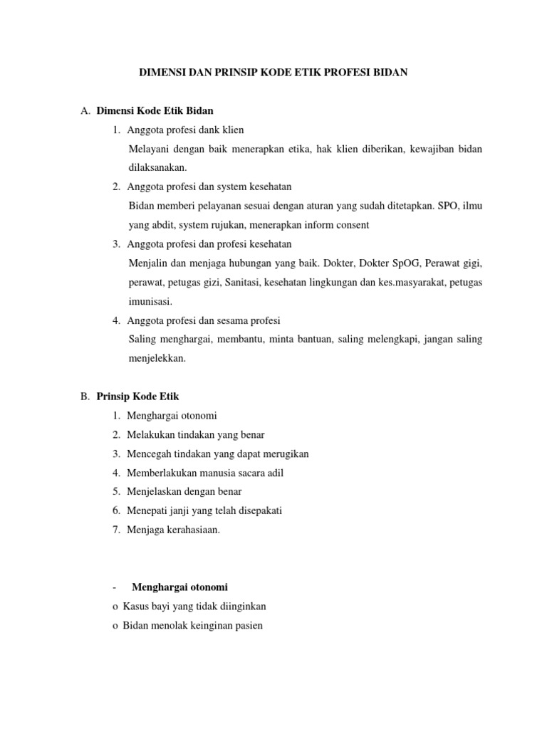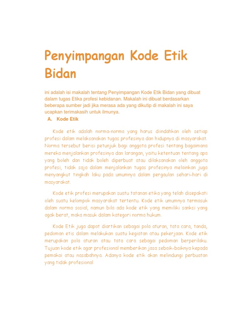 Etika Dan Kode Etik Pel Kebidanan Docx Document