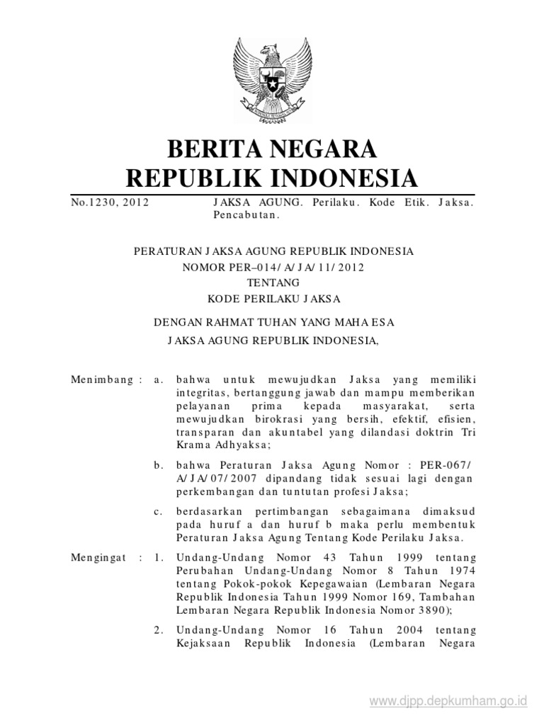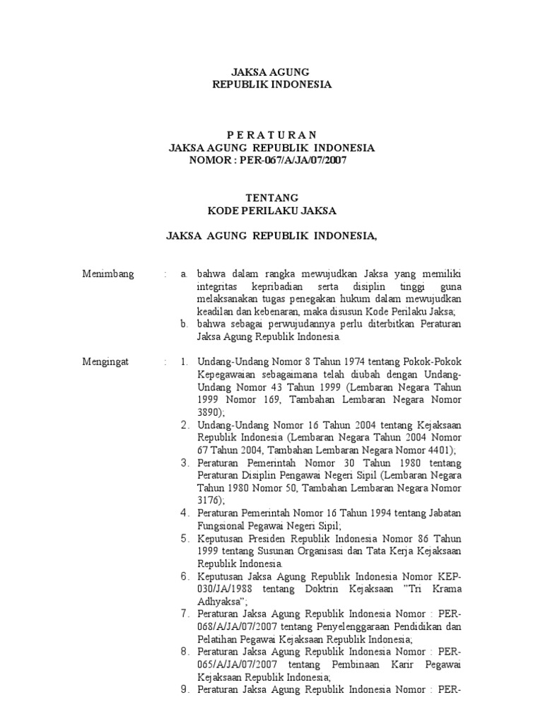 Kode Etik Jaksa Atau Kode Perilaku Jaksa