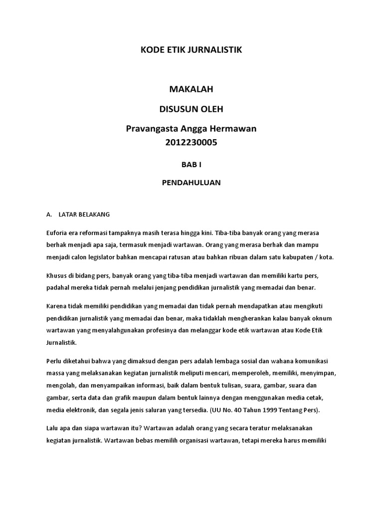 Kode Etik Jurnalistik Dan Kebebasan Pers Di Indonesia Pdf Free Download