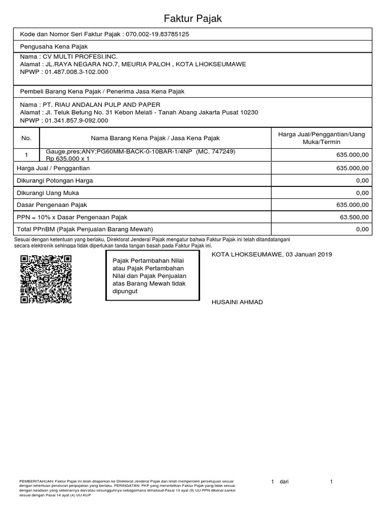Contoh Faktur Pajak Memiliki Barcode Tanda Tangan Digital