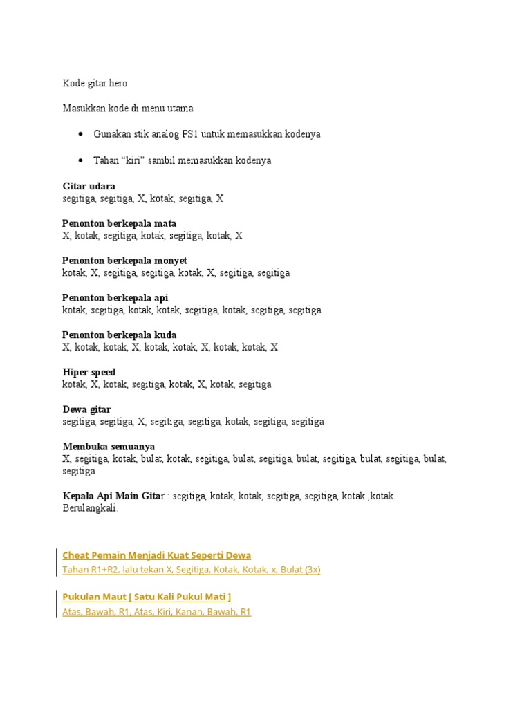 Daftar Cheat Guitar Hero Ps2 Terlengkap Bahasa Indonesia Exp