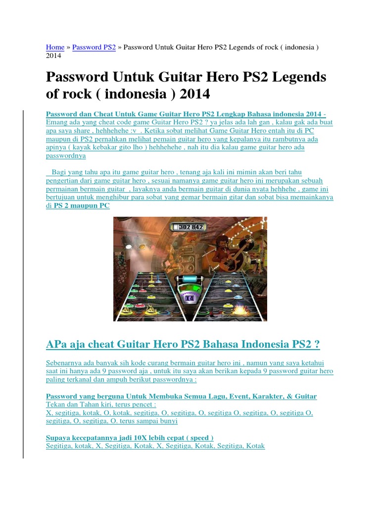 Cheat Guitar Hero 2 Ps2 Bahasa Indonesia Lengkap Koleksi Cheat Game