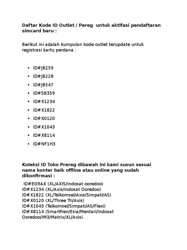 Kumpulan Kode Preg Outlet Id Dan Cara Aktivasi Via Sms