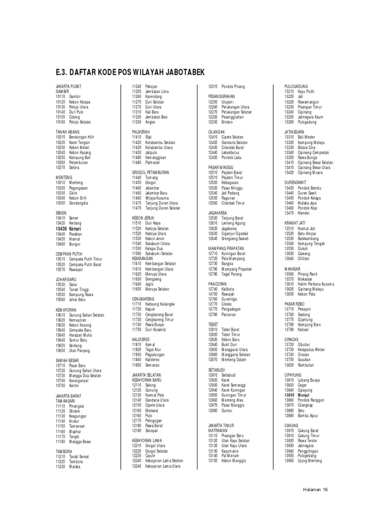 Area Pengiriman Wilayah Jakarta Kotamadya Kecamatan Kelurahan Kode Pos 1 Jakarta Barat Cengkareng Kedaung Pdf Document