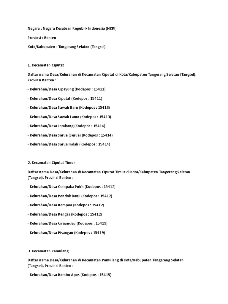 Daftar Seluruh Kelurahan Dan Kode Pos Di Tangerang Selatan Tangsel Media Portal Informasi Seputar Kota Tangerang Selatan