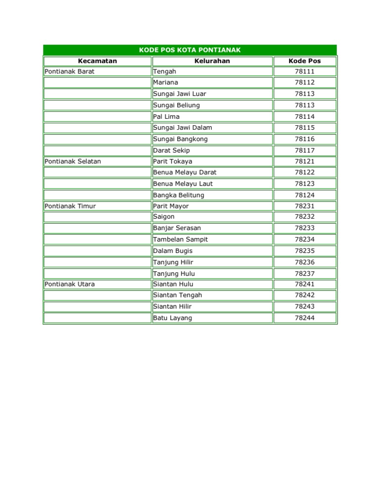 29 Daftar Kode Pos Kota Pontianak Resmi Terlengkap Ihategreenjello