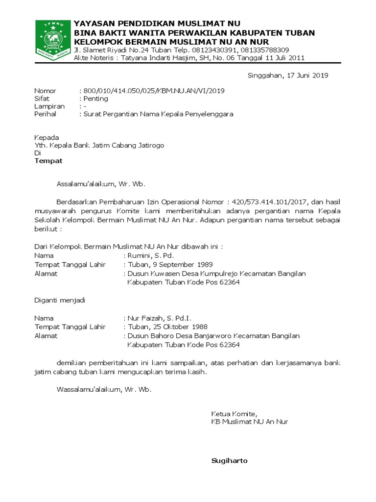 Pengajuan Pergantian Nama Kepala Pdf
