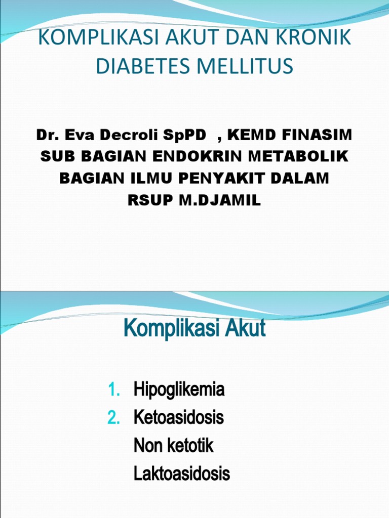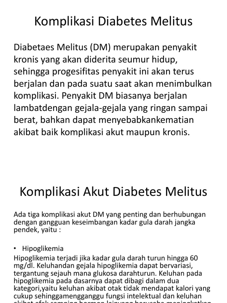 Komplikasi Dm Tipe 1 Dapat Digolongkan Sebagai Komplikasi Jangka Dekat Akut Dan Komplikasi Jangka Panjang Kronik Klinik Anak Ap Ap Jakarta