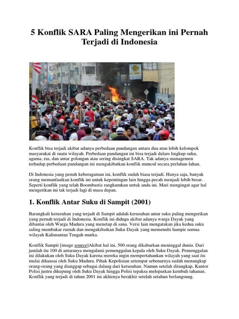 Konflik Konflik Sara Yang Ada Di Indonesia
