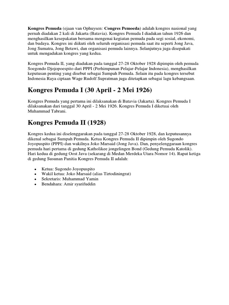 Apakah Perbedaan Kongres Pemuda 1 Dengan Kongres Pemuda 2 Brainly Co Id