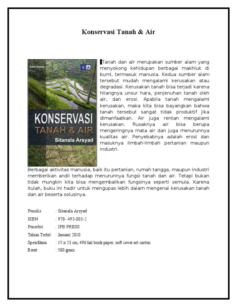 Jual Buku Konservasi Tanah Dan Air Sitanala Arsyad Ipb Press Di Lapak Warung Buku Bandung Bukalapak