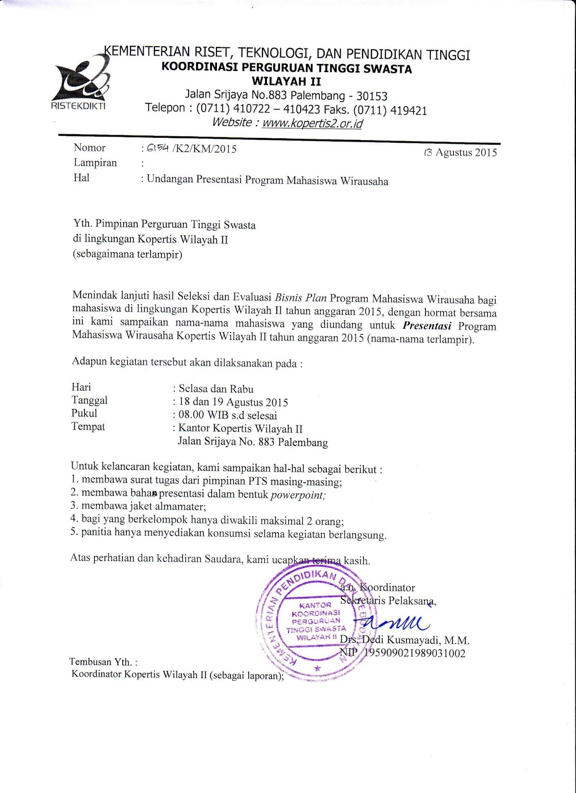 Andri Winata S E M Sc Undangan Presentasi Program Mahasiswa Wirausaha Pmw Kopertis Wilayah 2 Palembang Untuk Mahasiswa Ibi Darmajaya