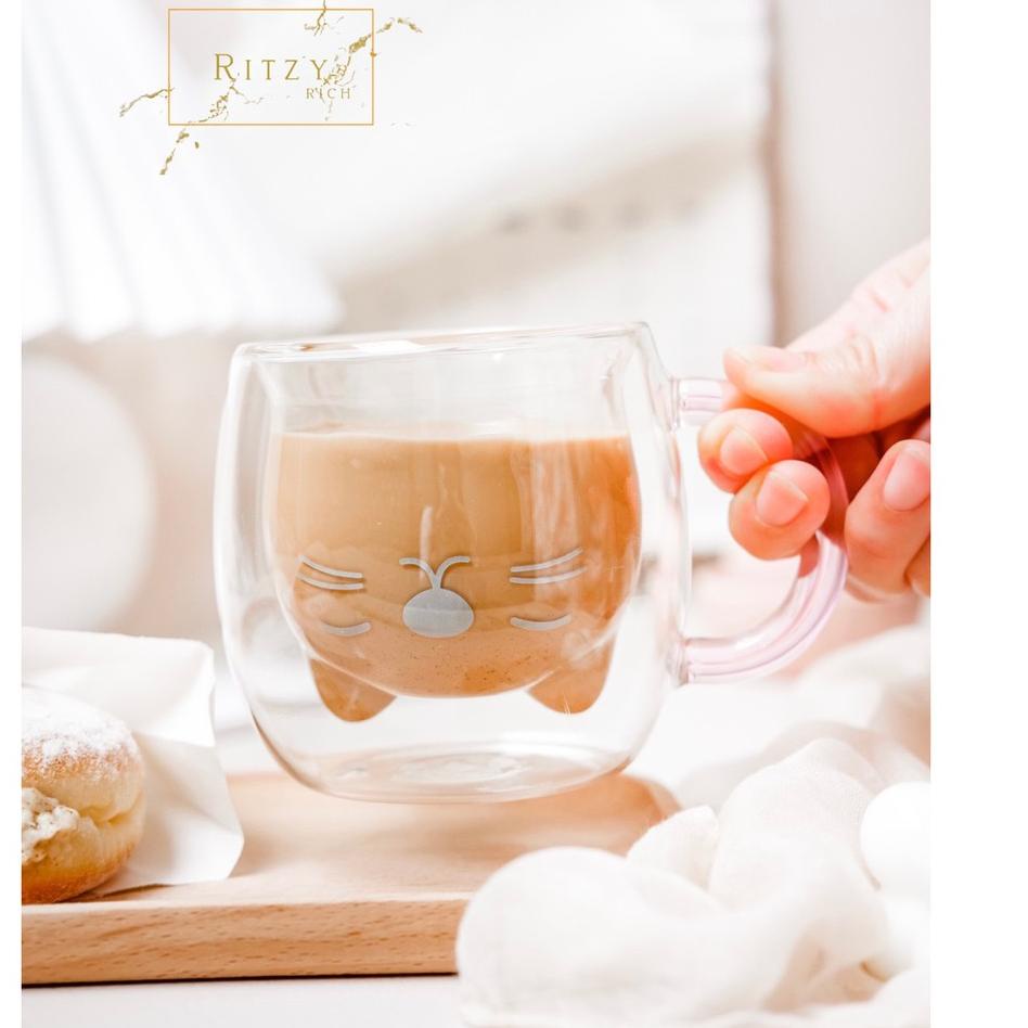 200ml Lucu Kartun Hewan Double Layer Bear Cangkir Kopi Susu Kucing Kaca Anak Jus Cangkir Mug Aliexpress