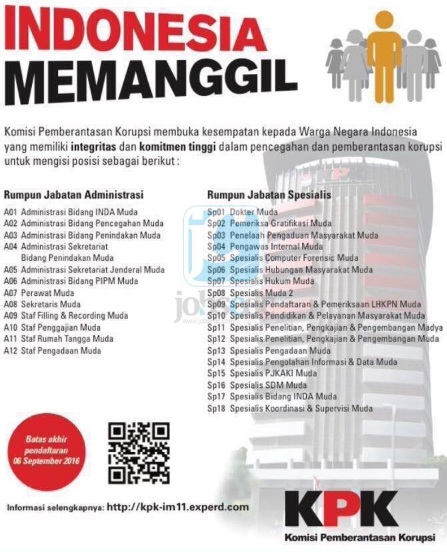 Komisi Pemberantasan Korupsi Recruitment Indonesia Memanggil 11 Kpk August 2016 Lowongan Kerja Terbaru April 2020 Bumn Cpns 2020
