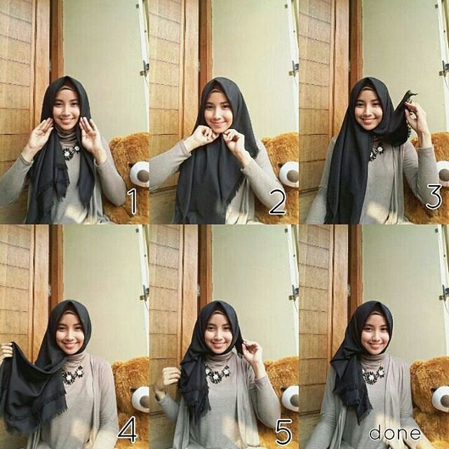 Tutorial Jilbab Segi Empat Kreasi Hijab Segi Empat Modern Yang Praktis 1 Lipat Hijab Segi Empat Sehingga Terbentuk Hijab Segitiga Kemudian Kenakan Hijab Tersebut Dan Satukan Kedua Sisi Hijab Di Bagian