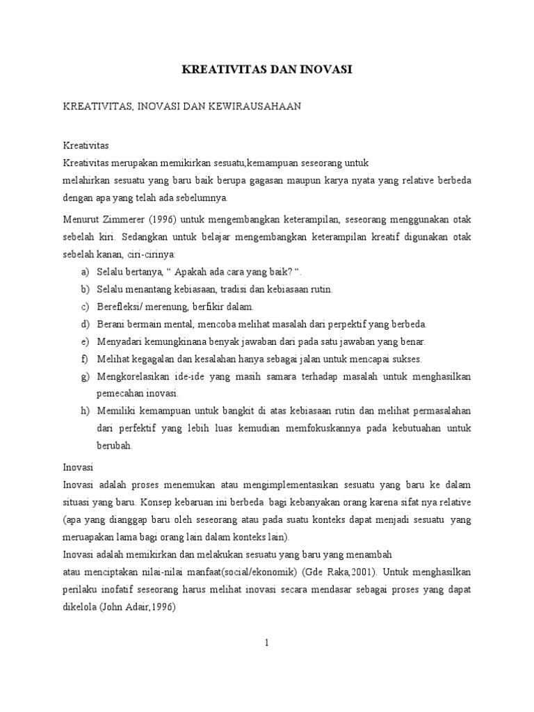 Kreativitas Dan Inovasi Upj Kreativitas Dan Inovasi 0 Mirip Namun Pengertian Berbeda 0 Kreativitas Pdf Document