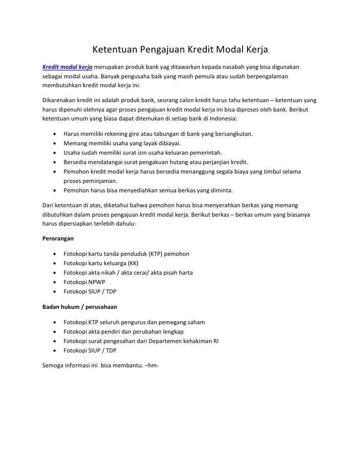 9 Contoh Kredit Modal Kerja Info Duwit