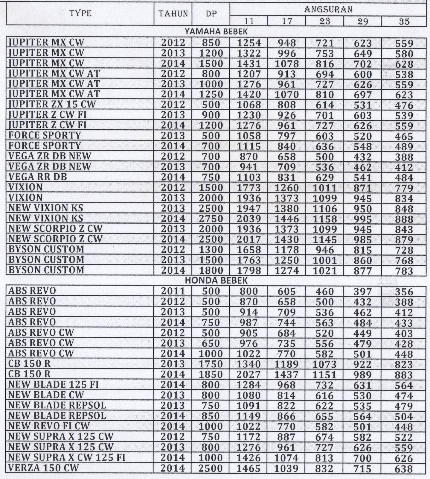 Update Harga Cicilan Kredit Sepeda Motor Bekas Tanpa Dp Daftar Harga Tarif