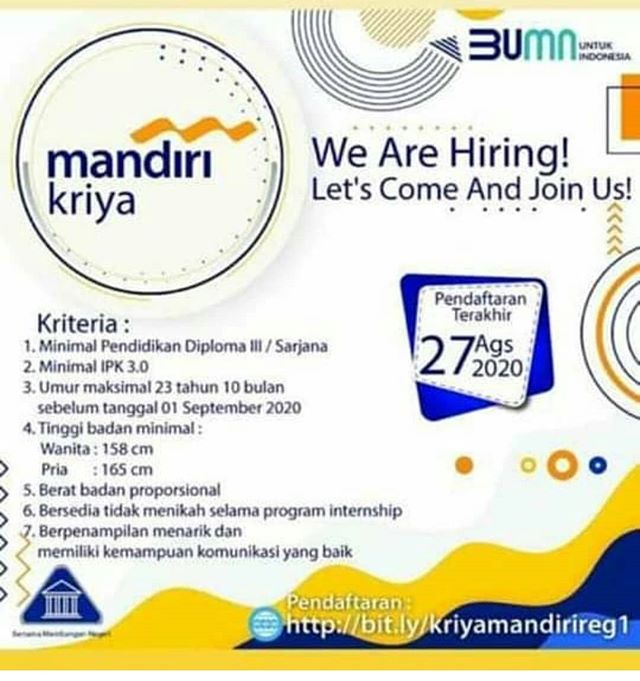 Forumhumasbumn On Twitter Halo Sobat Humas Bankmandiri Mengundang Lulusan Smu Untuk Mendapat Kesempatan Magang Di Bank Mandiri Dan Mendapatkan Pengalaman Dan Keterampilan Yang Berguna Di Dalam Dunia Kerja Melalui Program Kriya Mandiri