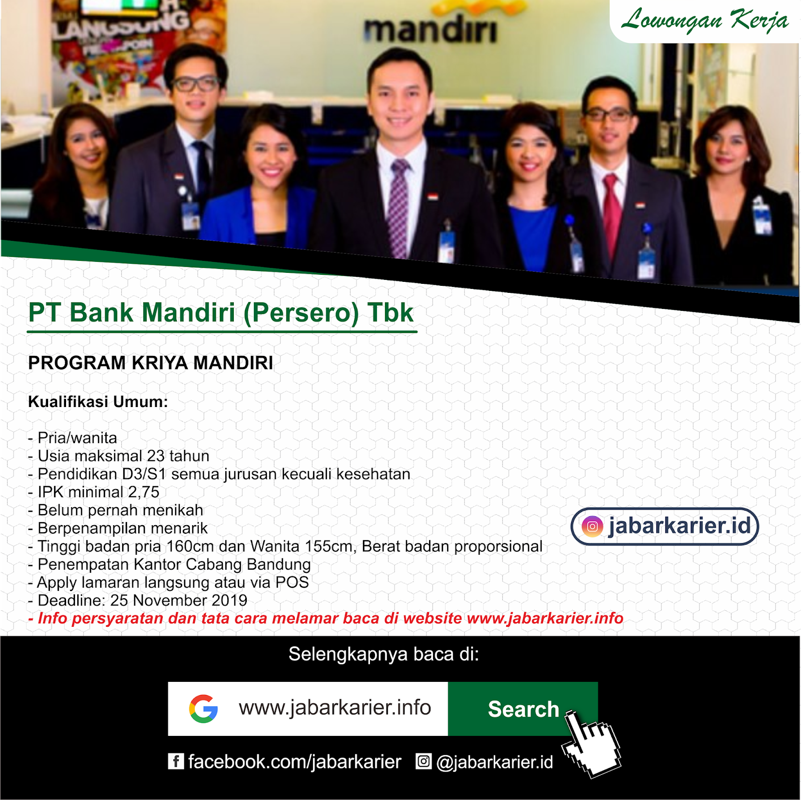 Lowongan Bumn Pt Bank Mandiri Persero Tbk Dibutuhkan Kriya Mandiri Pria W Aikerja Com