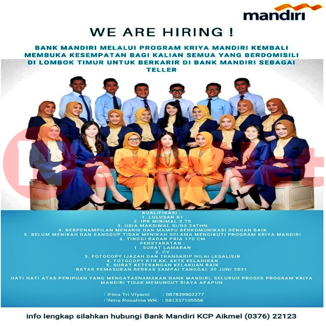 Hai Lotim Lowongan Kerja Bank Mandiri Kcp Aikmel Bank Mandiri Melalui Program Kriya Mandiri Kembali Membuka Kesempatan Bagi Kalian Semua Yang Berdomisili Di Lombok Timur Untuk Berkarir Di Bank Mandiri Rekrutmen