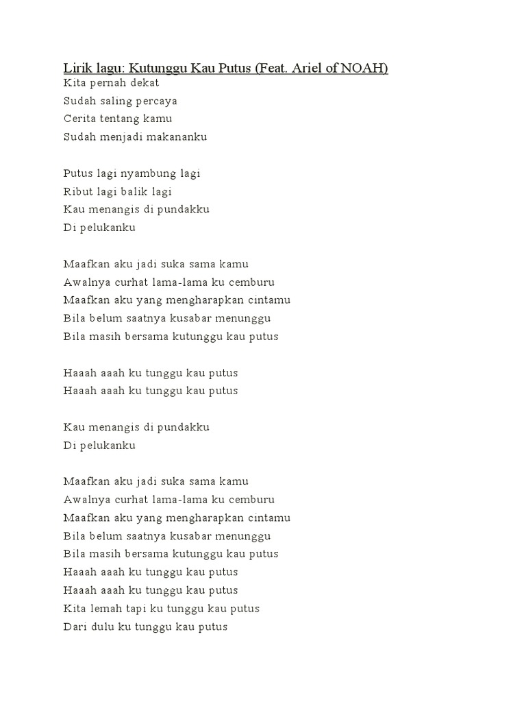 Lirik Dan Not Angka Lagu Syeril Ku Tunggu Kau Putus Feat Ariel Noah Dunia Lirik Not Lagu