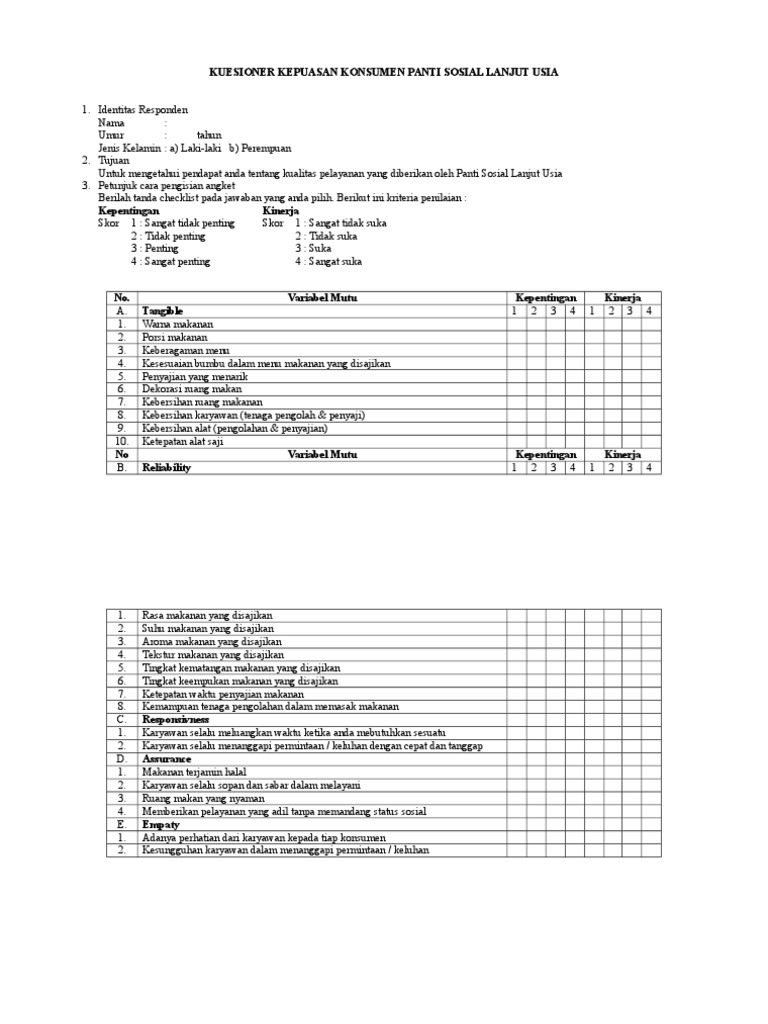 Sop Survey Kepuasan Pelanggan Dan Contoh Kuesioner Keuangan Tango