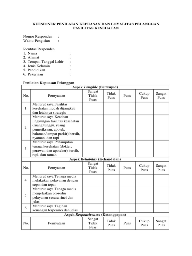 Sop Survey Kepuasan Pelanggan Dan Contoh Kuesioner Keuangan
