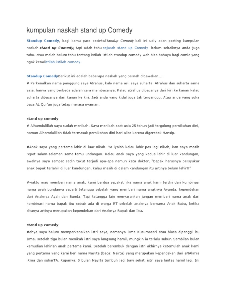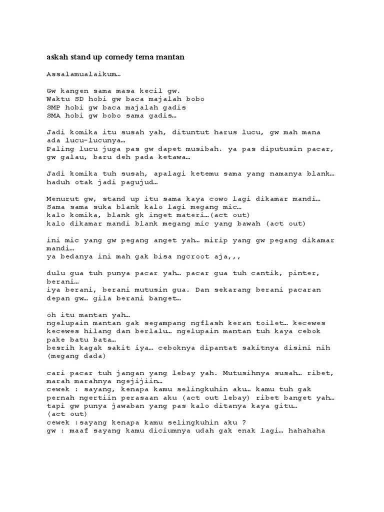 Teks Stand Up Comedy Lucu Singkat Berbagai Teks Penting