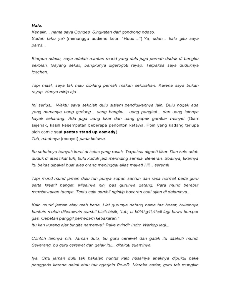 Contoh Naskah Stand Up Comedy Tentang Pendidikan Barisan Contoh