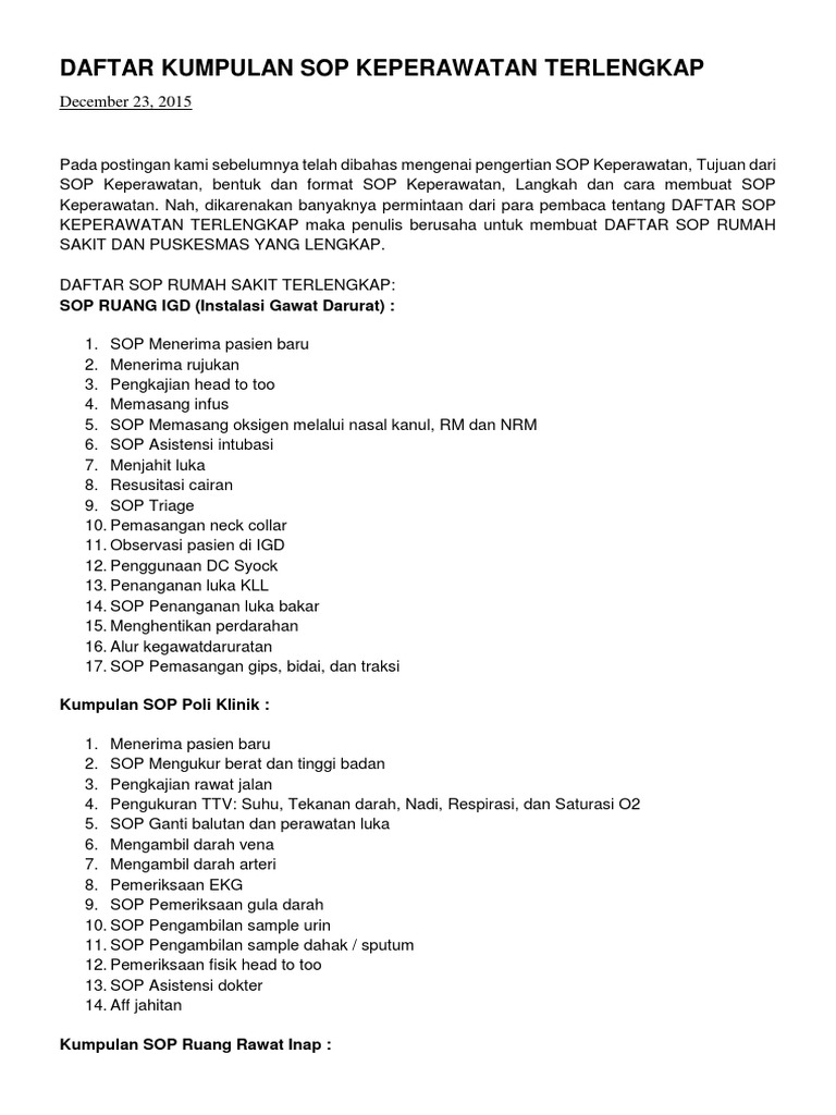 Artikel Kumpulan Sop Rawat Inap Rumah Sakit Hbs Blog Hakana Borneo Sejahtera