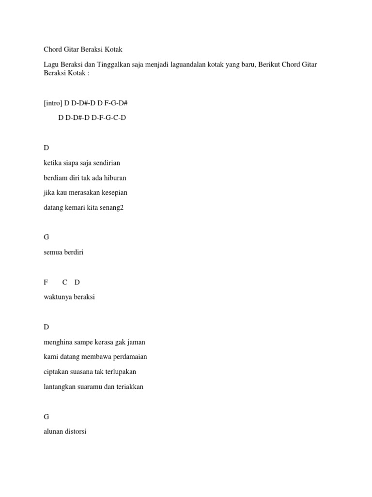 Kunci Gitar Chord Dan Lirik Lagu Kotak Beraksi Main Dari Kunci D Bangkapos Com