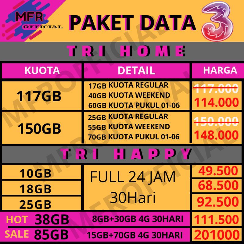 Daftar Harga Paket Internet Tri 3 Oktober 2021 Murah Dan Kuota Banyak Limapagi