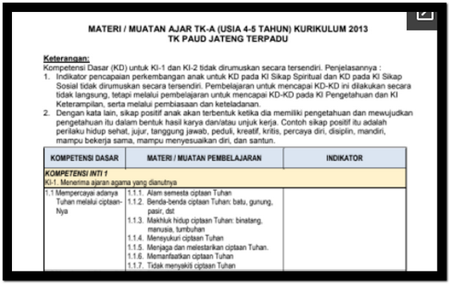 Muatan Pembelajaran Tk A Kurikulum 2013 Paud Format File