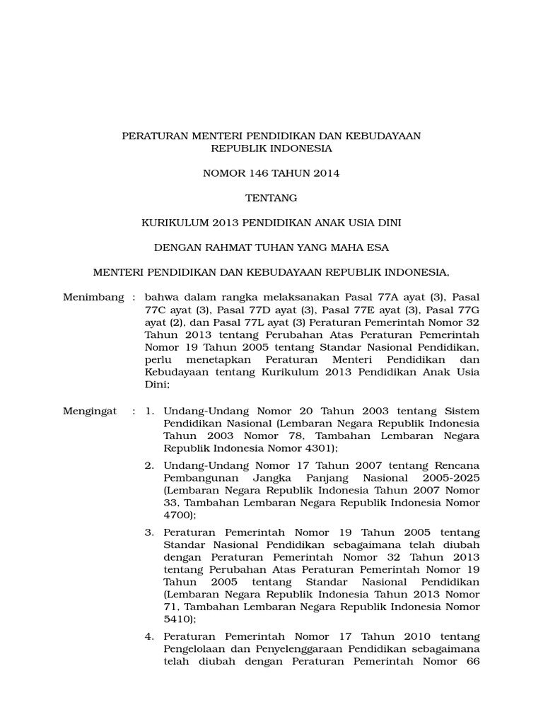 Download Kurikulum Paud 2013 Permendikbud 146 Tahun 2014 Paud Jateng