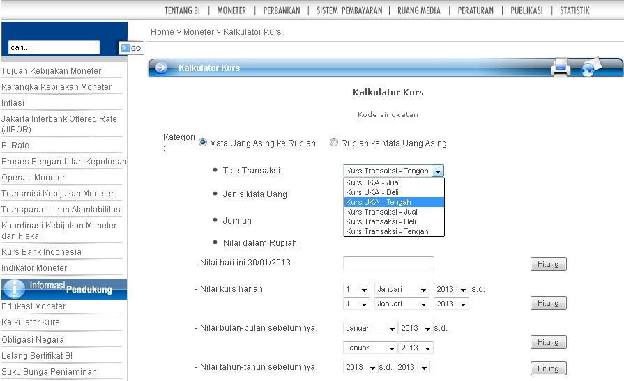 Mencari Kurs Harian Kurs Bulanan Kurs Tahun Di Bank Indonesia Indahnya Berbagi