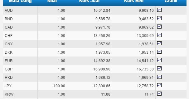 Nilai Tukar Kurs Rupiah Valas Hari Ini Bank Nasional Bii Bca Bni Mandiri Bri