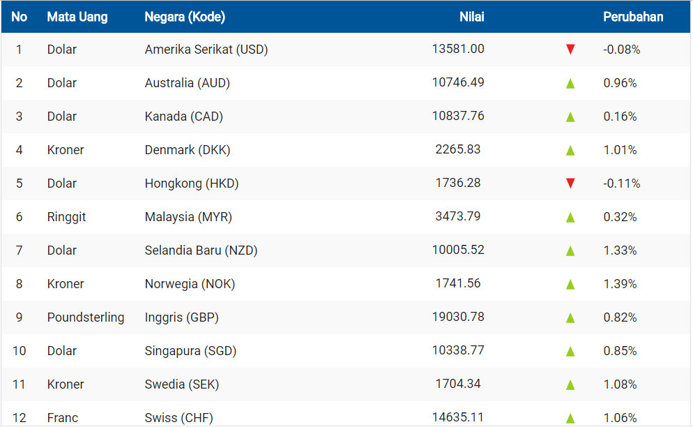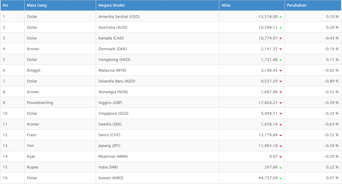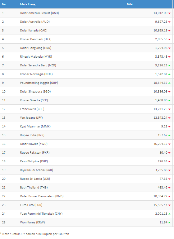 Kurs Pajak Kurs Pajak Hari Ini Kurs Pajak Mingguan