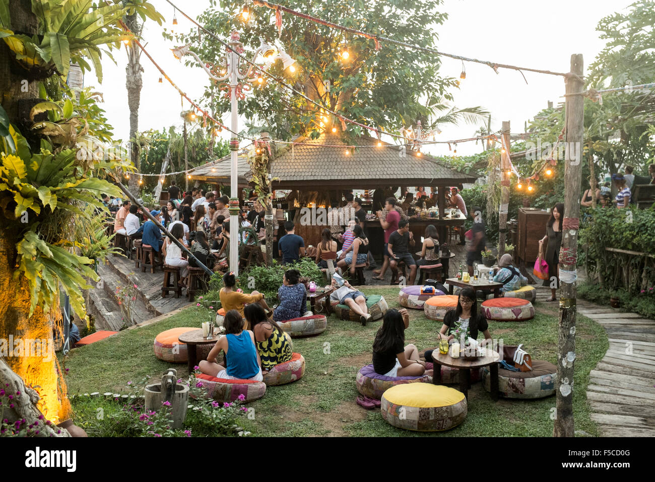 Customers Enjoy Drinks At Sunset At La Laguna Restaurant And Bar In Bali Indonesia Stock Photo Alamy