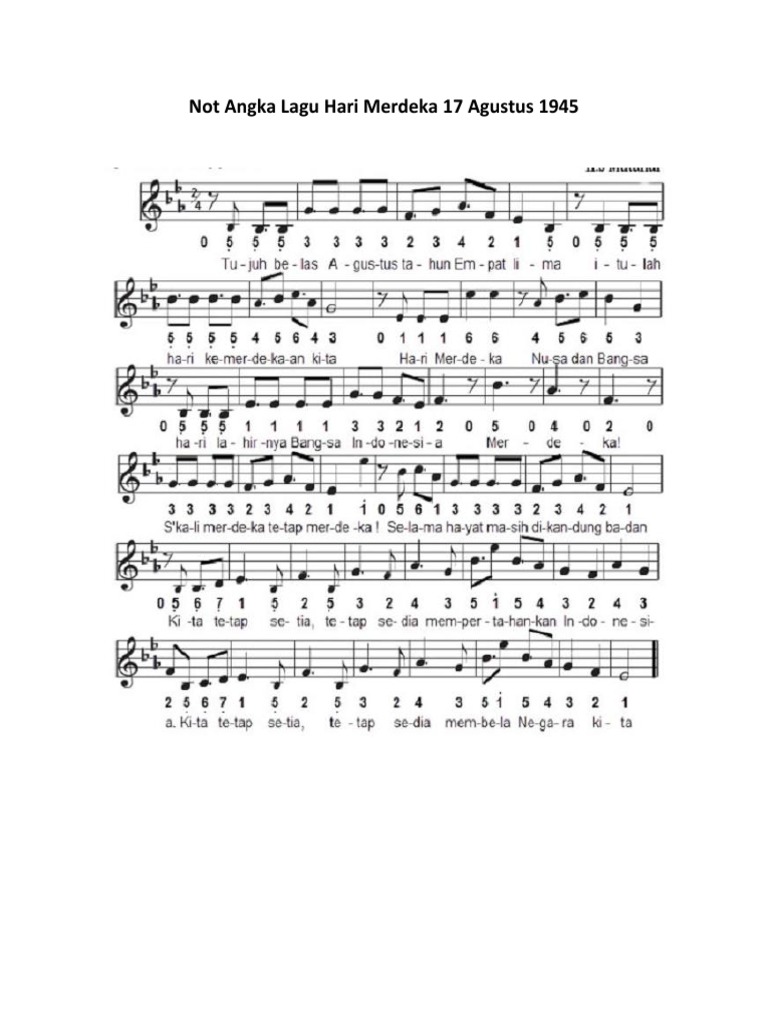 Not Angka Lagu Hari Merdeka 17 Agustus Dunia Lirik Not Lagu