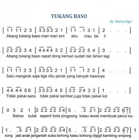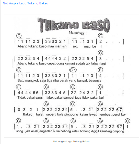 Not Angka Lagu Abang Tukang Bakso Brainly Co Id