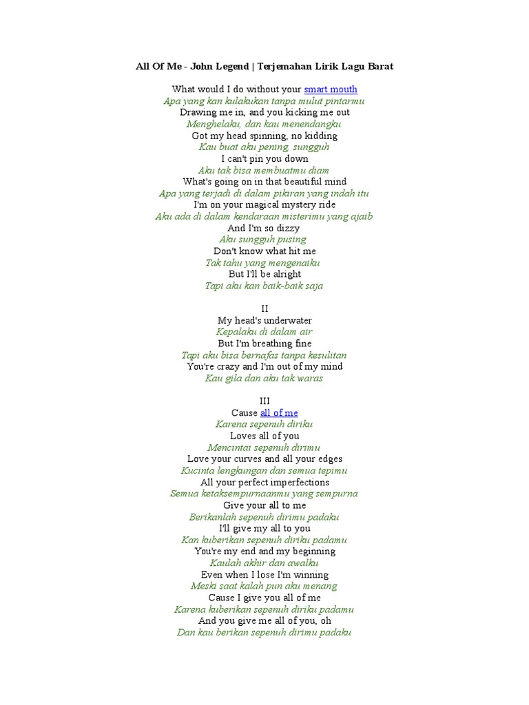 Lirik Lagu All Of Me Dan Terjemahannya Versi Dangdut Youtube