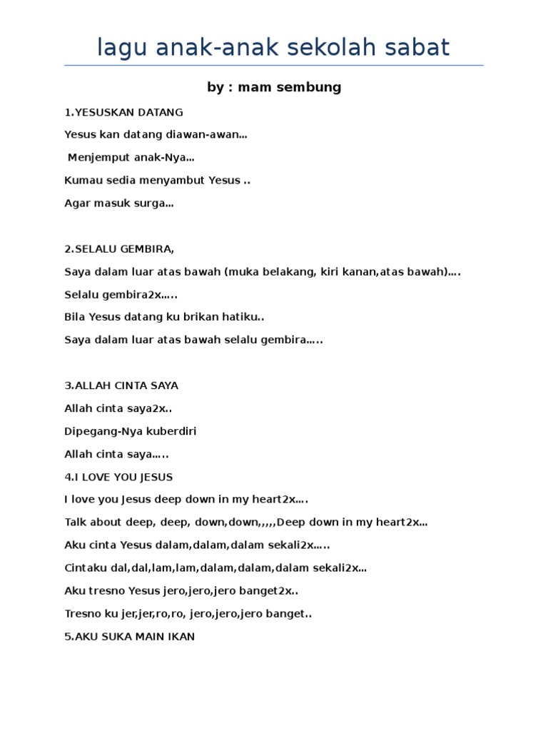 Kumpulan Lagu Anak Anak Indonesia Lengkap Needsindex Com